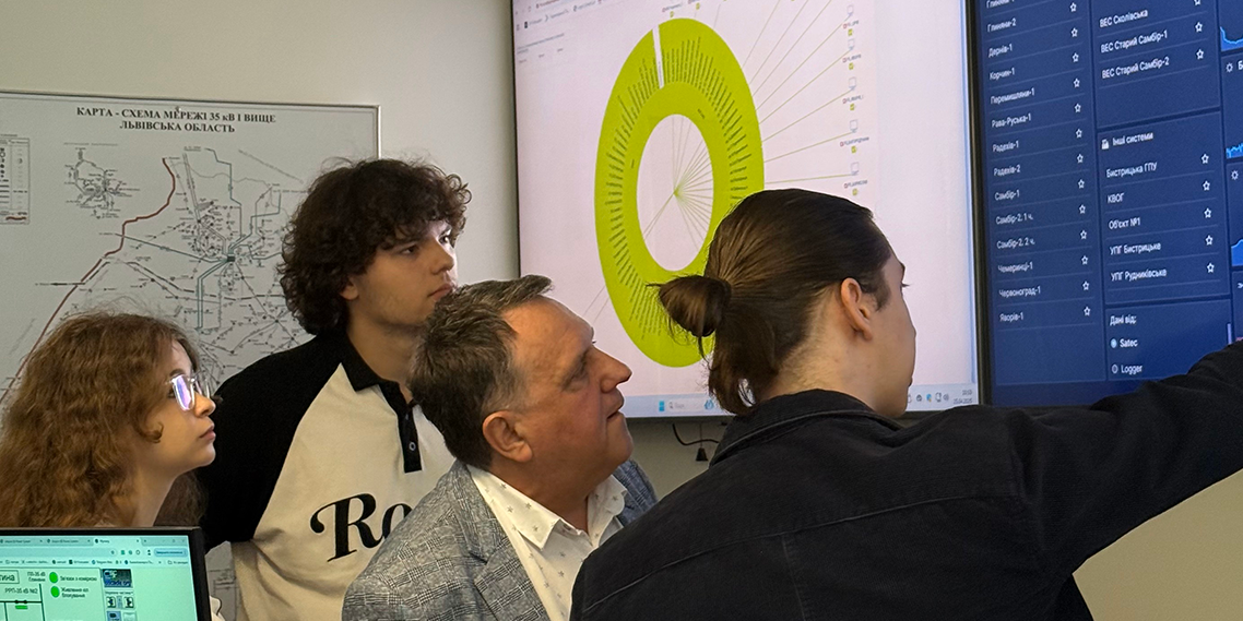 Power engineer Stefan Yankovskyi told the future specialists about the prospects of renewable energy sources and their role in Ukraine's energy independence, the operation of wind and solar power plants, as well as the peculiarities of generating and storing green energy. The guests were impressed by the work of the dispatch service, which is on duty around the clock, knows what is happening in the power grids in real time and responsibly controls the situation.